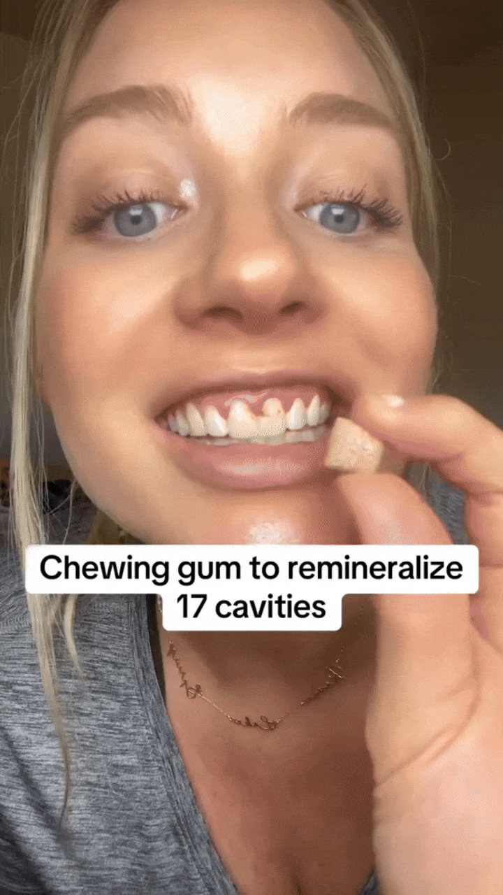 Our remineralizing formula rebuilds weak spots and strengthens enamel with every chew, eliminating sensitivity and expensive dental work.